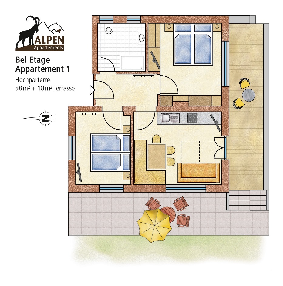 - 2 geräumige Doppelbettzimmer (FlatTV)